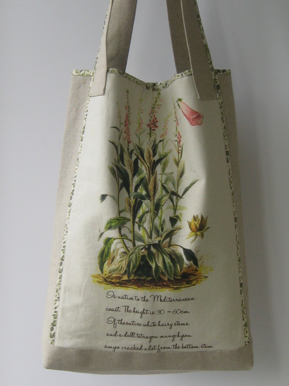 Сумки tote мои самые любимые, наверное, потому что они самые практичные. Как говорится, и в пир и в мир и в добрые люди. Поскольку ростом я высокая, то и с размером сумки решила не мельчить :) к тому же размер льняного лоскута с гербарием уже диктовал размер. В итоге сумка получилась 38х44 см, ширина дна 7,5 см, внутри только кармашек на молнии. Лен корейский, мне понравился, для отделки использовала остатки милейшего хлопка с зелеными листочками, который я уже использовала при пошиве пасхального панно ТУТ . Так что от отреза этого хлопка остался маленький кусочек со спичечный коробок и больше ни одного обрезочка))) Хорошая был ткань. Ткань для подкладки не могла найти, ничего не подходило, начала уже перебирать в памяти свои вещи. И вспомнила! Лежит уже лет 7-8 юбка, которую уже не ношу и в которой добросовестно отходила лет 5 :) В общем, юбка подошла отлично, хватило на подкладку и на внутренний кармашек, даже молния от юбки пошла на карман. Подкладку проклеила дублирином, поэтому сумка получилась почти каменной)))